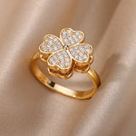 Clover Zircon Rotatable Clam Rings